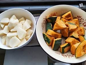 首先清洗窝瓜和土豆去皮,切成中等大小的块头,两种食材都不要切的太小,因为炖出来就不方便夹取了。