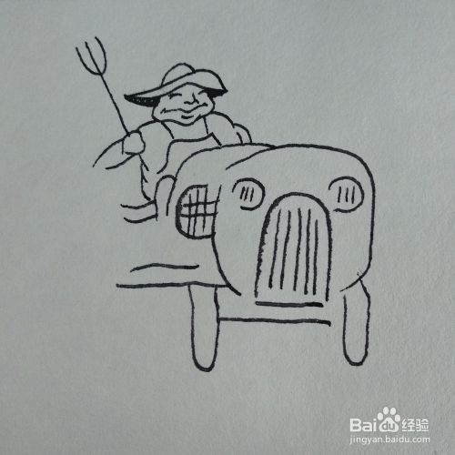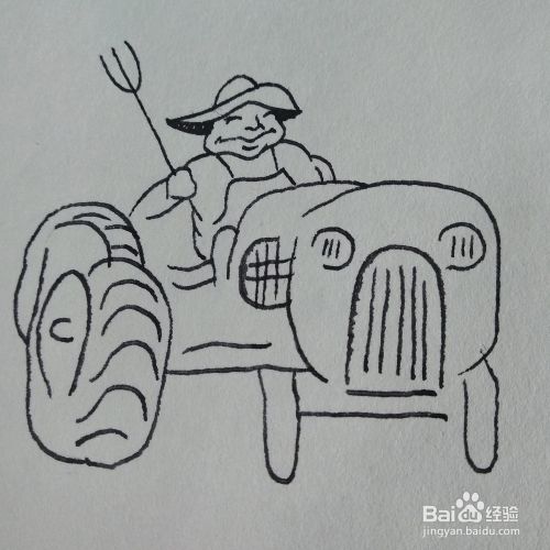 怎么画一个在开拖拉机的农民卡通儿童简笔画