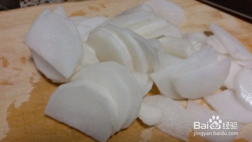 将萝卜洗净,先切成丝,然后切成细小的丁,越细越好。保证丁的均匀。