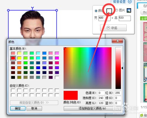 在背景设置中选择颜色,点击颜色后面的颜色框,就会出现各种颜色,在这里我们选中红色为例,选好后点击确定,就可以看到背景颜色已经成功更改。