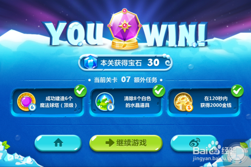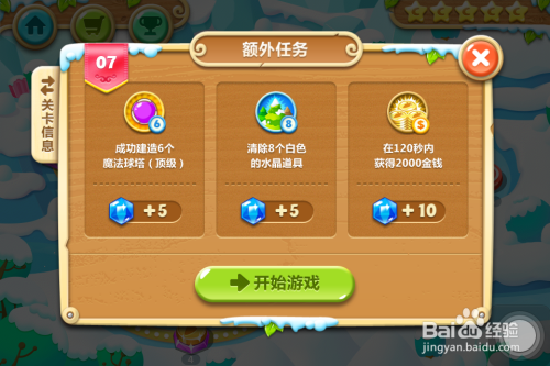 额外任务,特别注意第三个任务:在120秒内获得2000金币,在初期的时候不能随便打道具,主要攻击两边的“冰棍和雪糕”,获得的金币较多