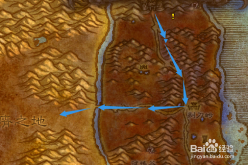 到达贫瘠之地沿路去十字路,去陶拉祖营地,继续往地图下方走,走到一个路口往东走。