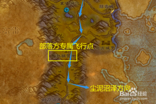魔兽世界游戏中尘泥沼泽在贫瘠之地,进入游戏前往部落飞行点,走到地图下方即可到达贫瘠之地。