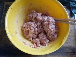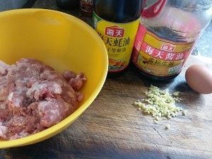 肉馅,里面加盐,生抽,耗油,鸡蛋,姜,香油,也可以加点白胡椒粉,然后搅打上劲。