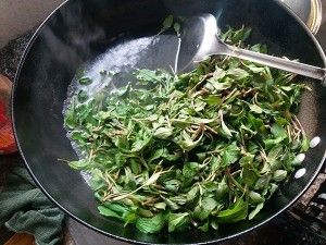 择菜,把多余的茎剪掉,不然吃着影响口感哦!