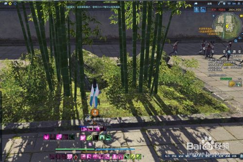 继续往院子里走,过了一个门,边上有一处竹子,边上有石头,石头后面就是演武木桩,坐标(2851.3164)