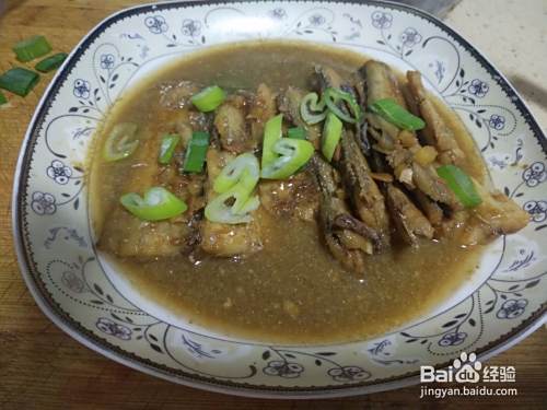 然后把带鱼盛到盘中,捞出辅料扔掉,加少许淀粉粘稠浇到上面就行了。