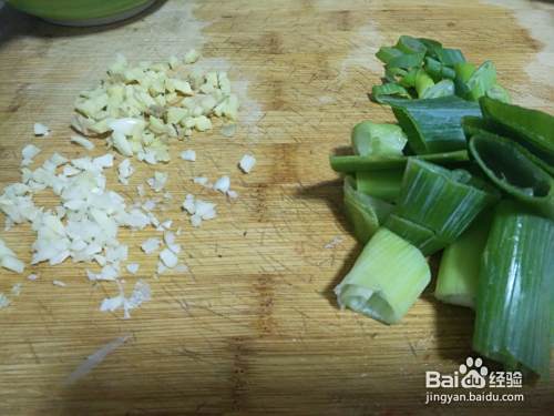 葱花和大蒜姜切好备用 。