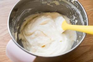 用刮刀以翻拌的手法翻拌均匀至无干粉。