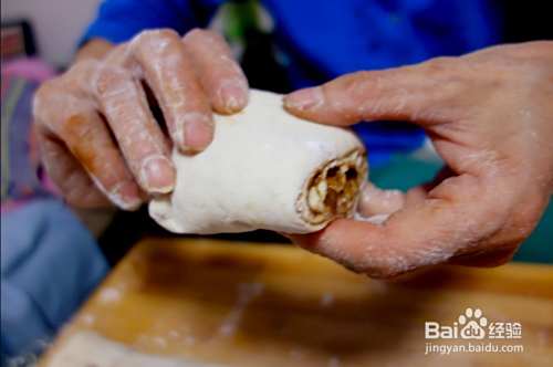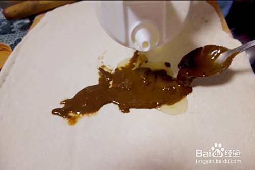 放入纯芝麻酱倒入食用油后把芝麻酱涂匀整个面皮