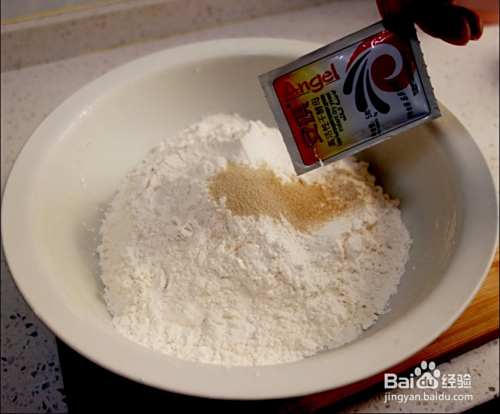 一袋牛奶倒入一个大碗中,在倒入温水加满(牛奶也可以不加),把面粉和水搅匀(花卷面和软些更好吃)
