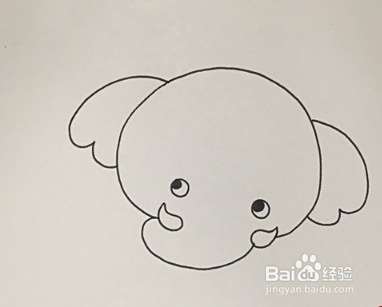 首先画出大象的头部,再画出鼻子和眼睛,鼻子两旁画上象牙。