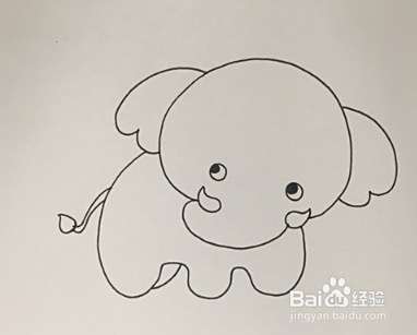 继续画出大象的身体,在屁股后面画上小尾巴。