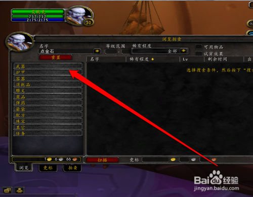 拍卖行经常会有我们需要的东西,我们可以在各种族的主城,进入拍卖行进行搜索购买点金石。