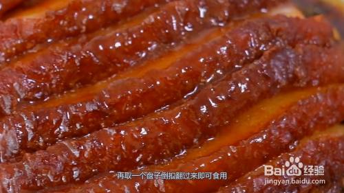 时间到了之后,将碗里面的汤汁倒出来,再取一个盘子倒扣翻过来即可食用。