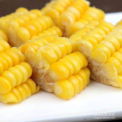 把香菇焯水 清洗之后 切成小块 把甜玉米根据需要剁成小段