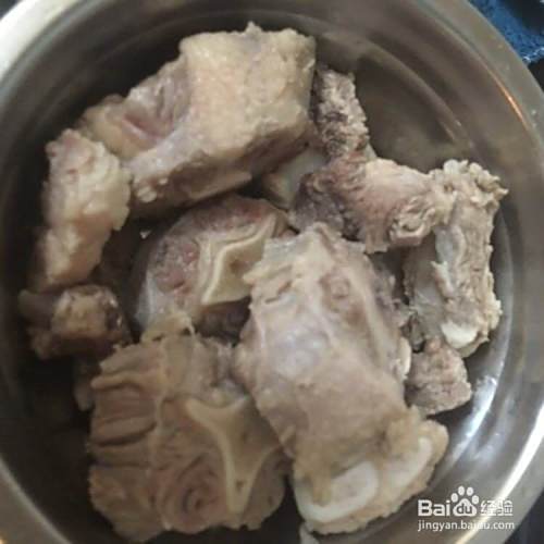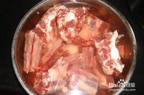 首先我们把买回来的牛尾骨 剁成小块 放到清水里浸泡 浸泡期间 水变红了 要及时换水 大概重复个3次左右就可以