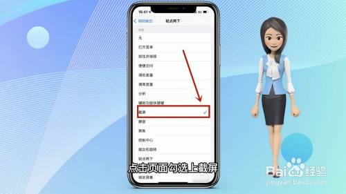 进入后点击触控,之后点击辅助触控,点击轻点两下,点击选上截屏后即可,具体步骤如下: