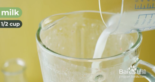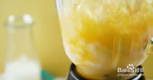 加入牛奶。最后才放入牛奶。如果一开始直接将牛奶和橙汁混在一起,可能会使它凝固。