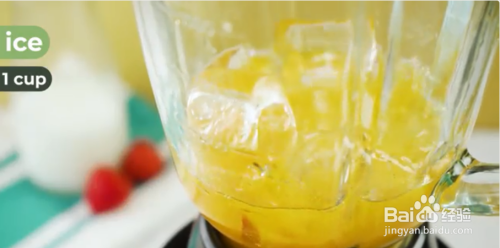 放入冰块。先加草莓,之后才放坚硬的冰块,这样搅拌机的刀片可以把它们磨得更细碎。如果你选用冷冻草莓,可以将冰块减少到110克,因为冷冻草莓本来就已经是冰冰冷冷的。