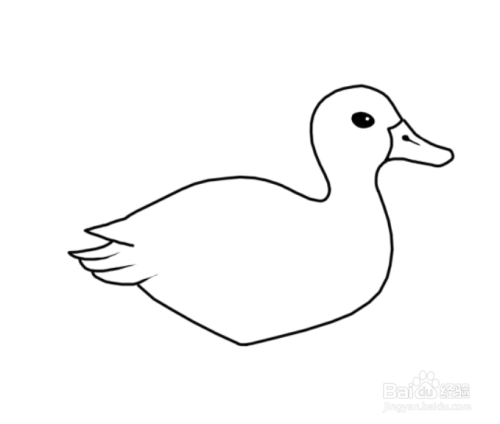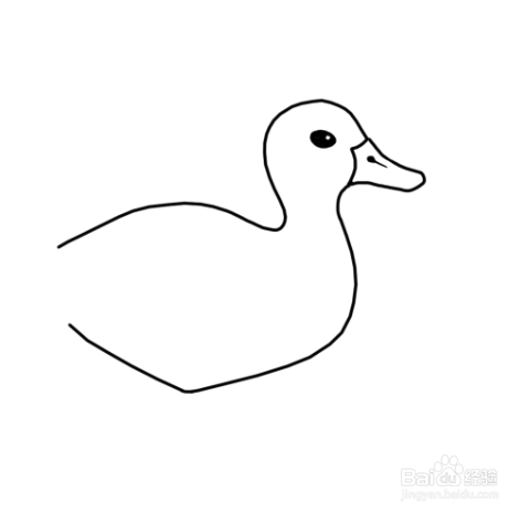 接着画上鸭子圆圆的脑袋和眼睛,对了~还有不太长的脖子。