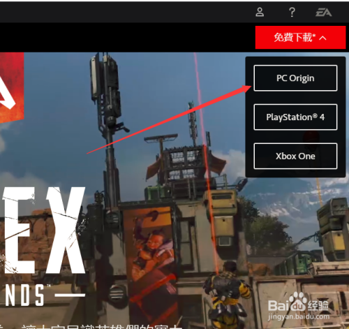 然后在页面 右上角的免费下载中选择【pc origin】