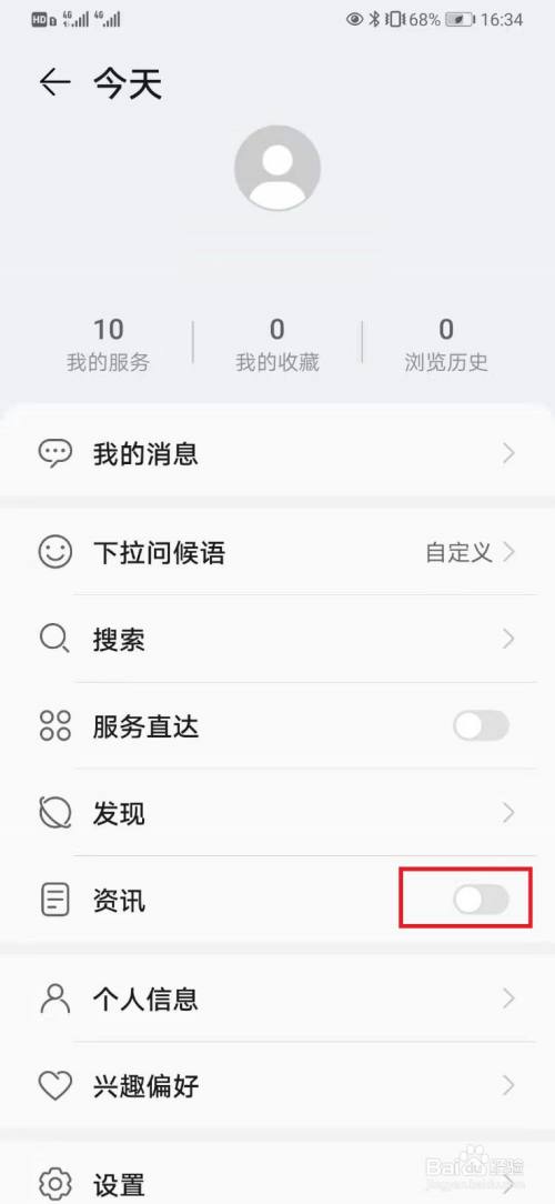 在华为手机上通过辅助助手关闭今天资讯服务的方法。