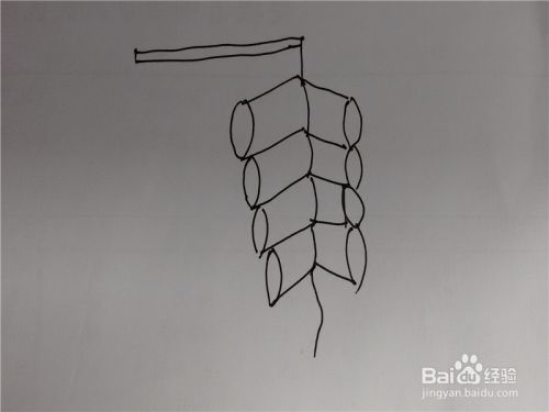 最后再变胖的上方用一段线条和一个小长方形作为鞭炮的提手。