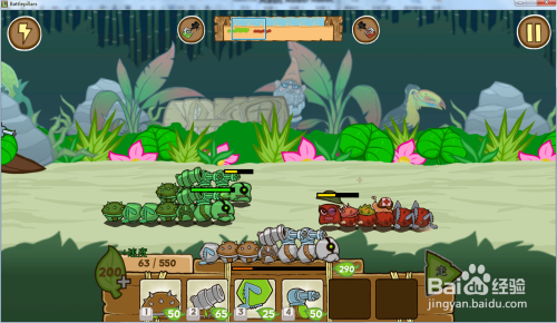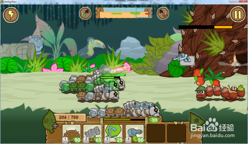 通过试探我们会发现敌方的毛毛虫有带持续掉血能和加血功能,我方要生产更多的毛毛虫才能抵御它们。