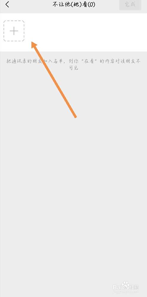 点击加号选择要屏蔽的联系人,点击右上角的完成。
