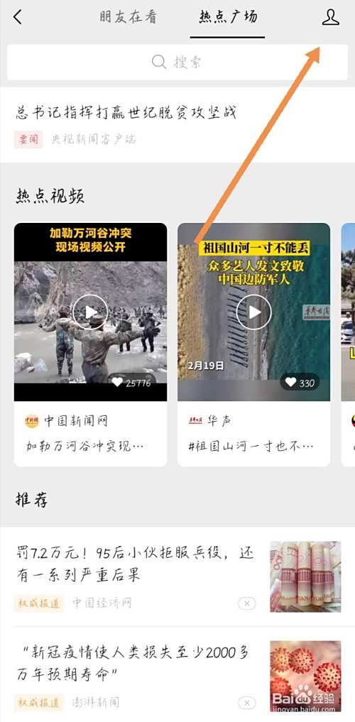 看一看页面选择右上角的头像。