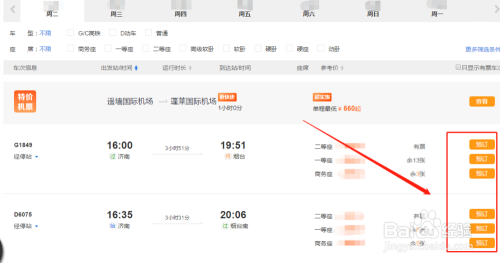第三步:接下来我们就可以看到我们需要购买的火车票就出现了,在这些火车票里面找到自己想要购买的火车票,进行购买。