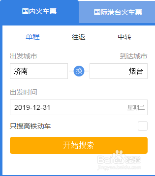 第二步:接着我们输入自己的出发地和我们的目的地,点击查询,出发地就是我们的济南,目的地就是烟台。接着就会跳转到下一个界面了。