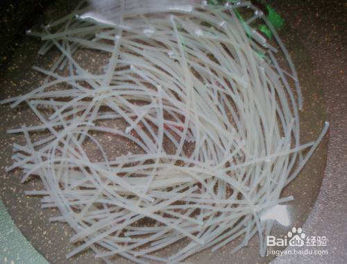 控干水,在粉条中加上一勺食用油,将其拌均匀,保证每一根粉条都能粘裹上油,炒锅中添上油,烧热后,放入葱姜蒜末,小火煸炒出香味;