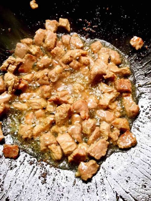 随后将胡萝卜,香菇,土豆,洋葱,青豆依次放入翻炒3分钟