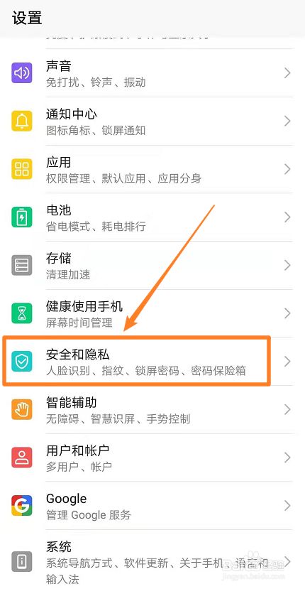 往下滑动,点击【安全和隐私】。