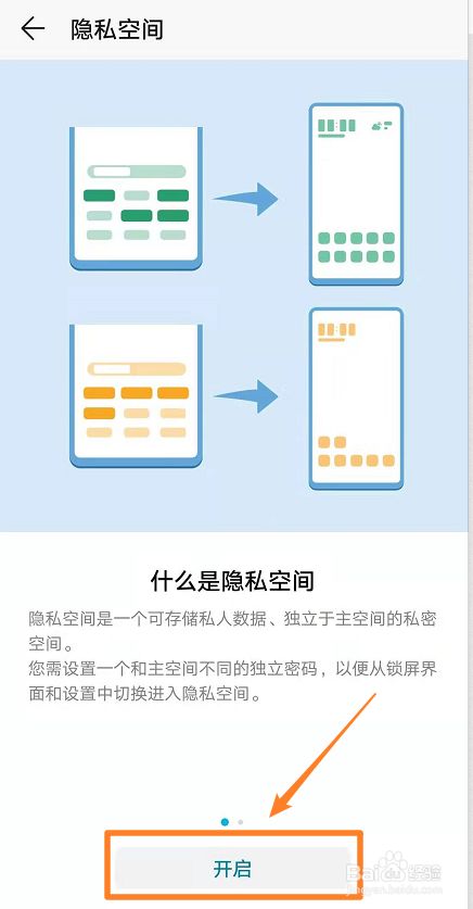在出现的隐私空间解释界面中,点击【开启】。