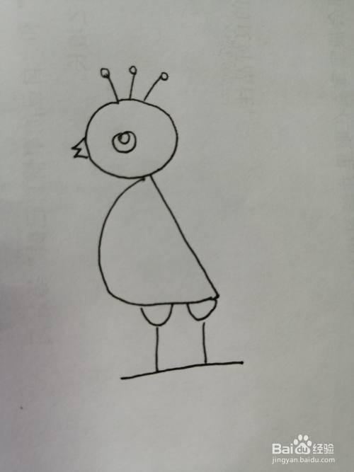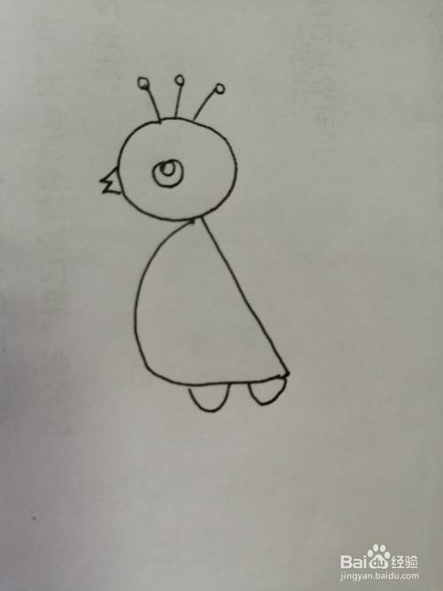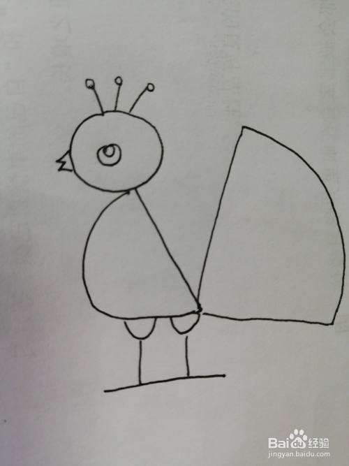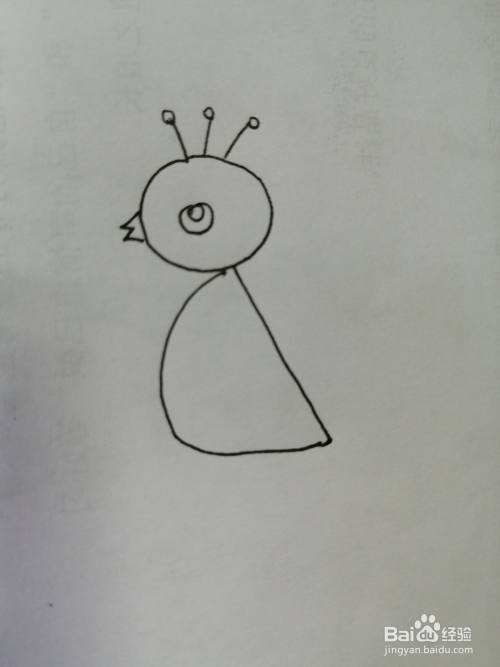 第四步,然后把简笔画小孔雀的身体部分画出来。