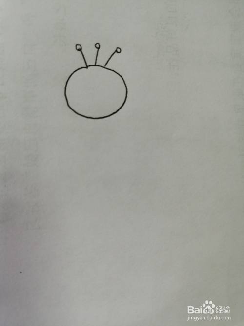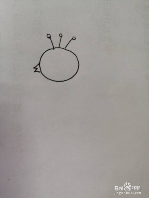 第一步,我们先把简笔画小孔雀的头部和头上的触须画出来。