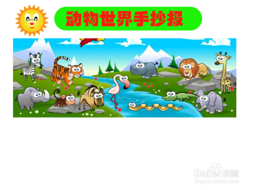 在标题的正下方画上一个关于“动物世界手抄报 ”的画面。