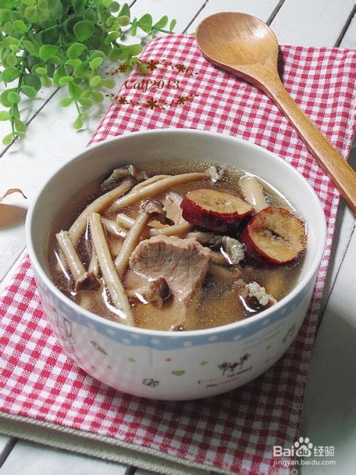 汤煲了50分左右,接着把红枣、茶树菇一同放进锅里煲至熟。