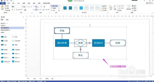Visio绘制流程图时,如果手动调整形状间距的话非常费时,也不能准确统一。怎样自动调整流程图中形状之间的间距呢,这里分享操作方法供大家参考。