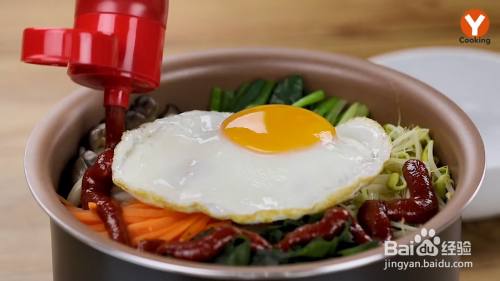 锅巴饭煮好后摆上配菜和太阳蛋。