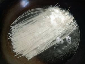 开始煮面,水烧开,下面条。面条煮到中间还有一点白心,用筷子挑起一两根,能轻松夹断就好了