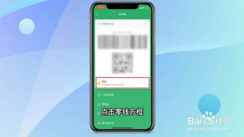 进入支付界面,点击左上角的收付款,找到二维码下方的零钱。