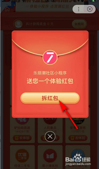 5. 完成体验活动,得到一个红包,点击【拆红包】。