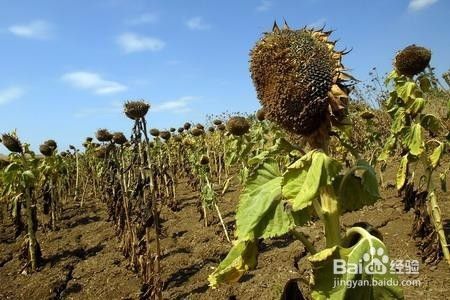 干旱引起的空秕:向日葵是一种抗旱适应性较强的作物。但在花盘形成至终花期需水量最大,约占全生育期需水量的60%。此期缺水就会空壳秕粒增多,造成严重减产。生产上受干旱胁迫,又缺乏水源的补充灌溉是导致空秕增多的重要因素。