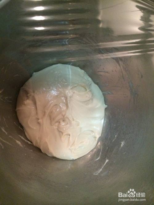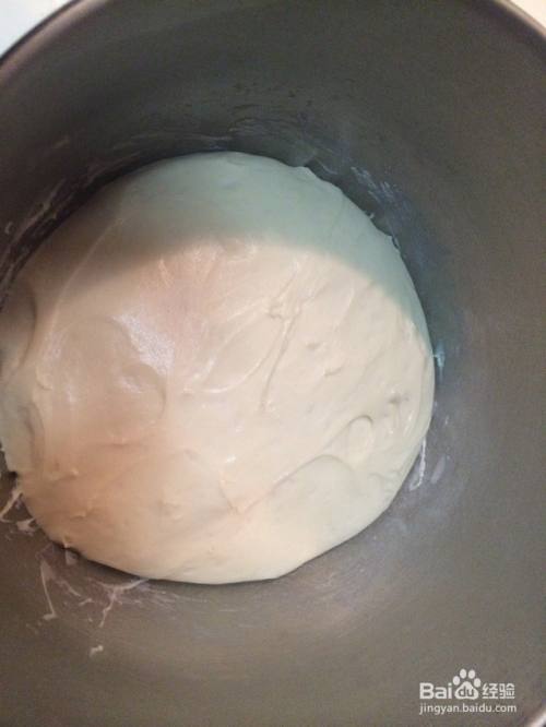 除了黄油之外的,所有面团材料均匀混合、浸泡、用厨师机搅拌至扩展阶段后加入黄油,搅拌至完全扩展,有结实的手套膜。