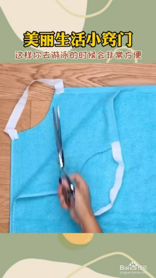 将毛巾对折,然后剪掉一个角,然后分别缝上一根弹力带,就可以做成一件泳衣外套。