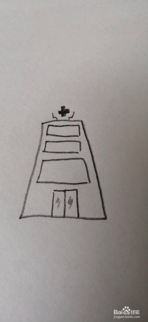 先画出医院大厦的框架,轮廓。下面粗上面细。